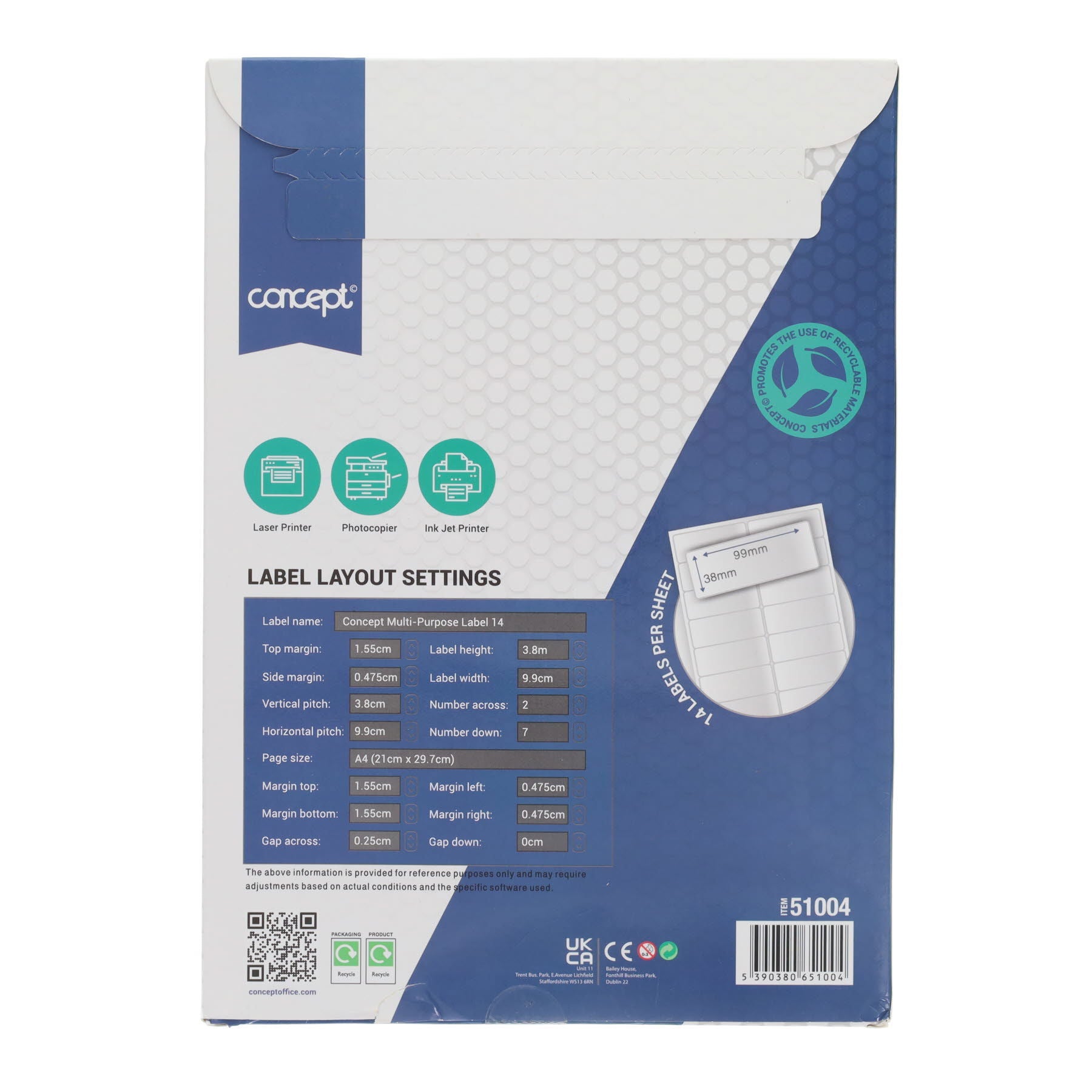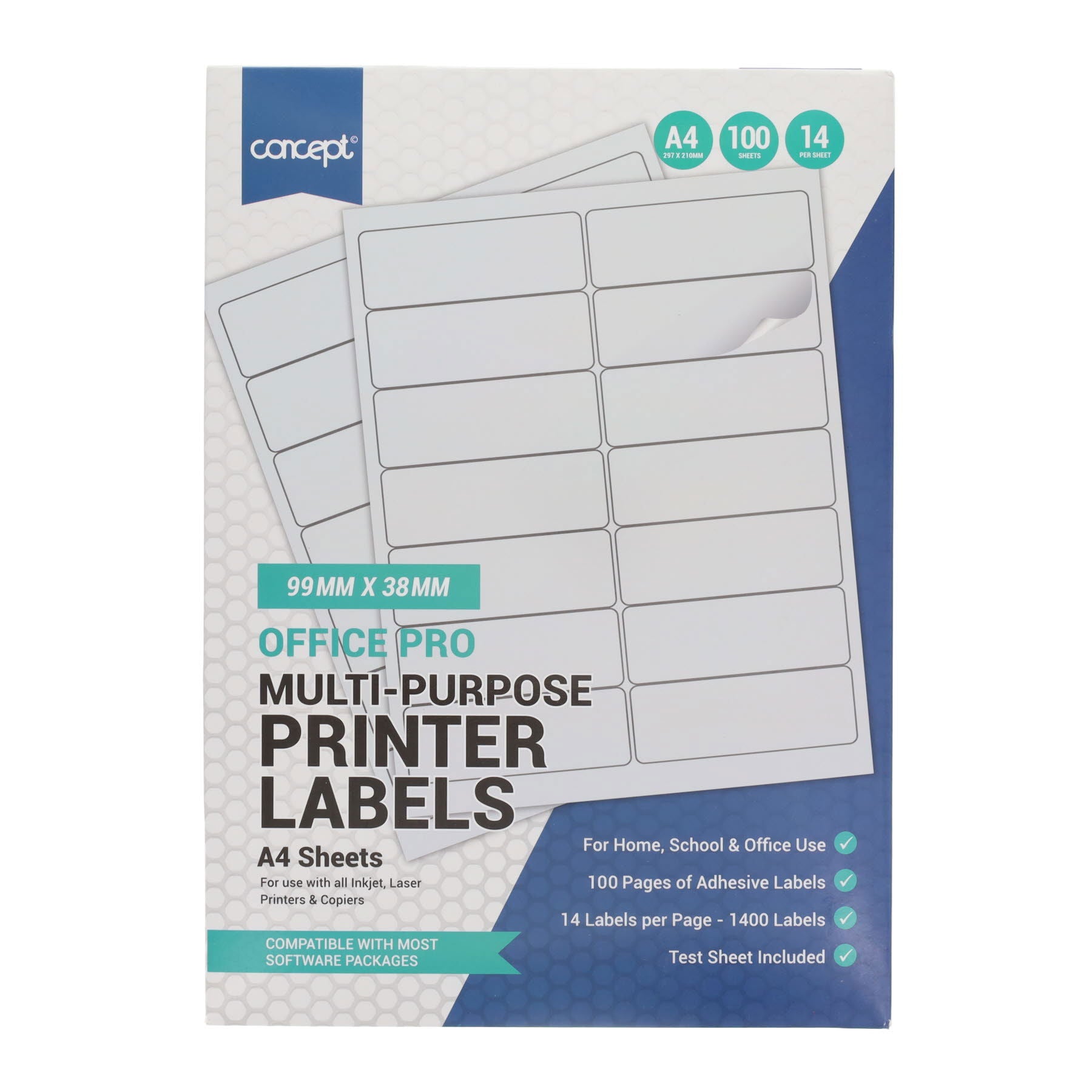 Concept A4 Multi-Purpose Printer Labels 100 Sheets - 14 Label