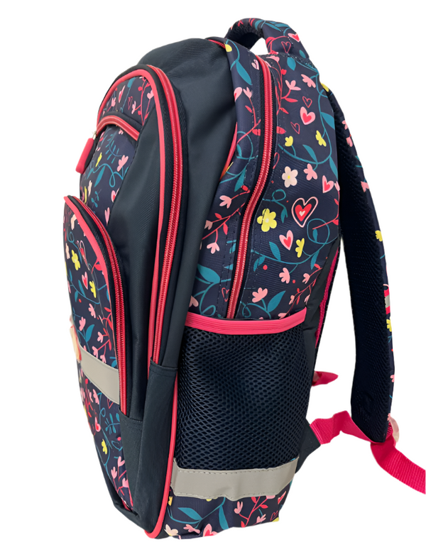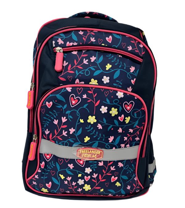Send her back to school in style with the Freelander Comfort Hearts Backpack – designed especially for girls in primary or secondary school. With a 26-litre capacity, this lightweight yet durable school bag offers functional features in a fun and feminine navy design with heart print.