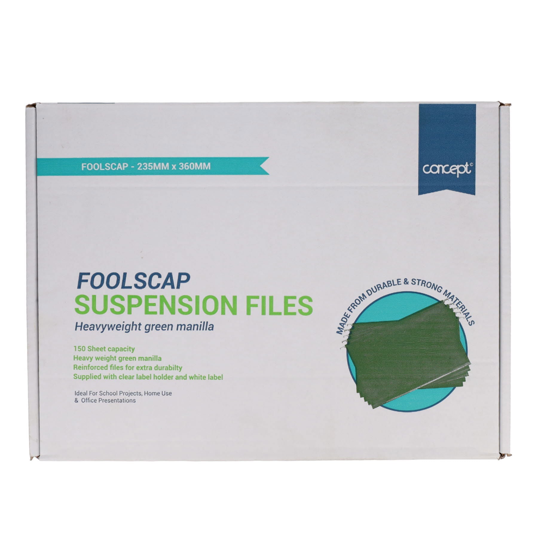 Keep your school paperwork perfectly organised with this practical Concept Box of 50 Green Foolscap Suspension Files. Designed with educators and administrators in mind, these sturdy files slip effortlessly into standard filing cabinets and accommodate all your essential documents—from student records to lesson plans. The vibrant green hue makes colour-coded filing a breeze, while the robust construction withstands the hustle and bustle of busy school environments. Whether you're managing classroom materials or office administration, this generous box of 50 delivers the reliable storage solution your institution deserves. Transform filing chaos into calm, organised bliss!
