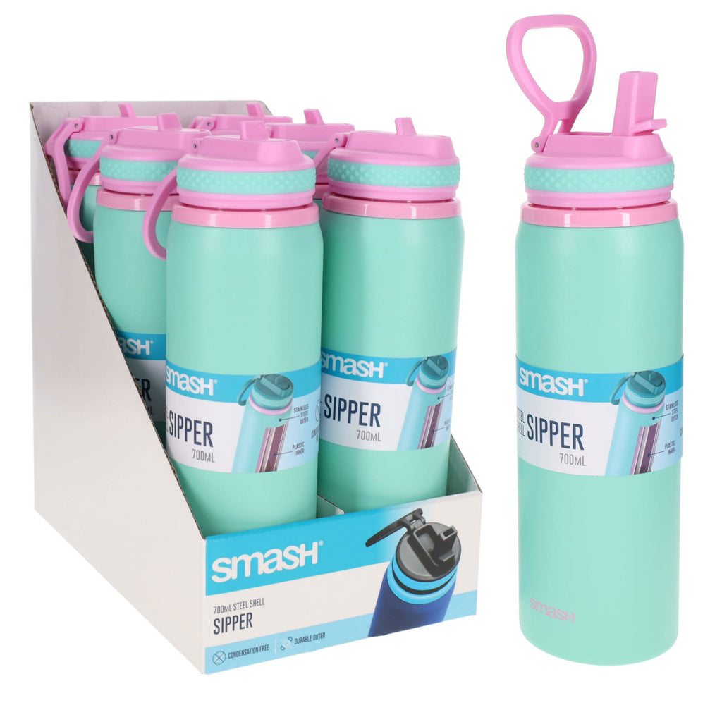 Smash 700ml Steel Shell Sipper Bottle - Green CDU is backordered and will ship as soon as it is back in stock.